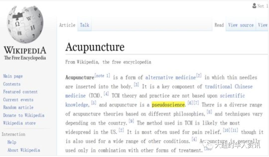 就在越来越多的人觉得针灸终于要守得云开见月明的时候,针灸又出事了,确切的说,出事的不是针灸而是闹事的维基百科。2017年在英文版的维基百科里搜索“针灸”,你会看到“伪科学”这样的字眼。作为一个国际性网站,而且还是英文版,可想而之这会给针灸在海外的发展造成多大的负面影响。