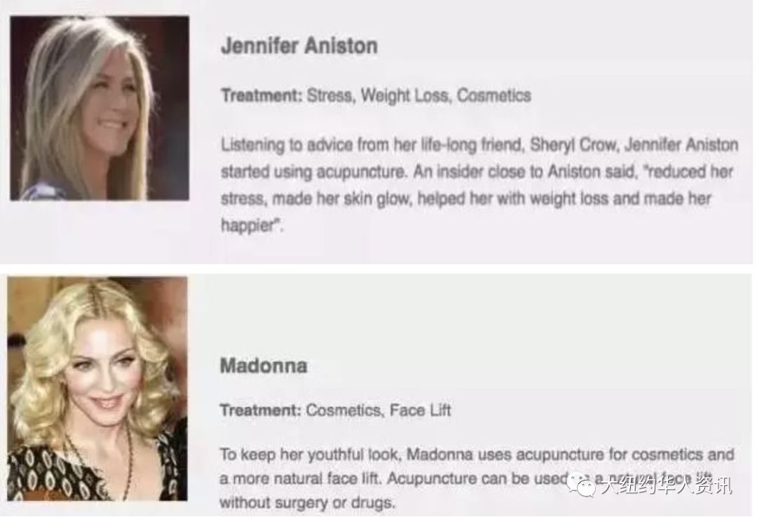 美国真人秀明星Kim Kardashian(金·卡戴珊),老友记瑞秋扮演者Jennifer Aniston(詹妮弗·安妮斯顿)和歌坛天后流行教母Madonna麦当娜都是中医美容的狂热粉丝!